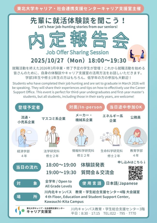☆Call for participants☆Job Offer Sharing Session on 4th, Nov.