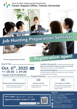 ■intended participants:All international students of Tohoku University looking to find employment in Japan.