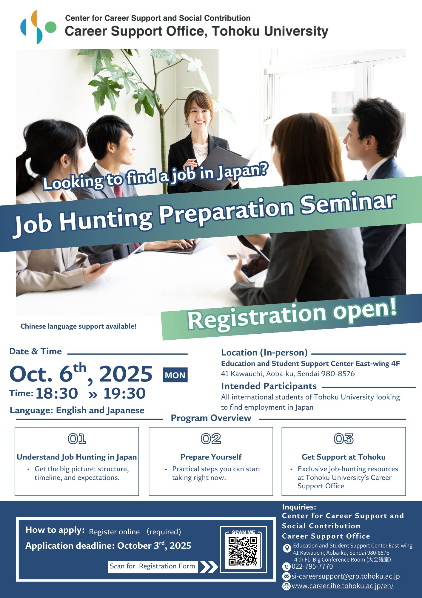 We will also introduce upcoming career support seminars and job-hunting events for international students starting in October,