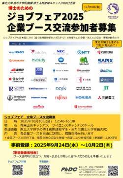 博士を求める企業との交流会「博士のためのジョブフェア2025」を10月10日(金)に開催いたします。